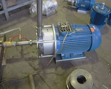 Схема устройства диспергатора ![]() Принцип работы диспергатора. Перекачиваемая диспергатором среда подводится к всасывающему патрубку и отводится из напорного патрубка под воздействием подпирающего давления. Крупнозернистые частицы смеси, подлежащие гомогенизации, попадают на крыльчатку агрегата, затем, получив ускорение, попадают на гомогенизирующий узел. В диспергирующем узле происходит их раздробление между вращающимся и стационарным калибровочными цилиндрическими ножами ротора и статора. Вращающийся и стационарный калибровочные ножи исполнены в виде колец с отверстиями. Попадающие на диспергирующий узел частицы (например, жировые шарики) выдавливаются крыльчаткой под воздействием давления, созданного центробежной силой, и проходят через отверстия. Так как частота вращения крыльчатки и одного из колец 3000 об/мин., происходит постепенное срезание (раздробление) подвижной частью кольцевого ножа (каждым отверстием вращающейся части) жировых шариков по мере их продвижения. Может быть доукомплектован преобразователем частоты вращения, установка которого позволяет добиться увеличения скорости вращения до 10000 об/ мин. Заводские испытания диспегратора ![]() |
