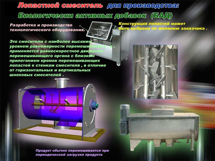 Смеситель лопастной для производства биологически активных добавок (БАД), лечебного, диетического питания, спортивного питания, лечебной косметики и др.