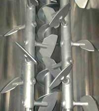 Лопастной смеситель. В лопастных смесителях сыпучие пищевые продукты перемешиваются лопастями, закрепленными, как правило, на горизонтальном валу. Лопастные смесители смесители бывают непрерывного и периодического действия. ![]() В лопастных смесителях непрерывного действия лопасти закрепляются на валу по винтовой линии, что обеспечивает одновременное перемешивание и перемещение продукта вдоль вала. Для обеспечения необходимого качества перемешивания сыпучих продуктов в лопастном смесителе непрерывного действия экспериментально устанавливается оптимальное время смешивания, которое должно соответствовать времени перемещения сыпучих продуктов в смесителе от места загрузки к месту выгрузки. Это время можно изменять путем изменения числа оборотов вала с лопастями, а также угла поворота лопастей относительно вала. В лопастных смесителях периодического действия продукт обычно перемешивается радиальными лопастями, несколько повернутыми относительно оси вращения . Такое устройство рабочих органов обеспечивает перемешивание с одновременной циркуляцией продукта в корыте смесителя. Типы рабочих органов лопастного смесителя ![]() Внешний и внутренний вид лопастного смесителя ![]() Схема устройства лопастного смесителя ![]() Заводские испытания лопастного смесителя ![]() |