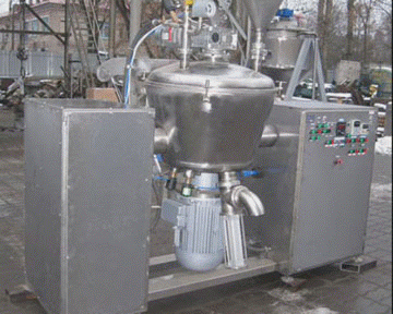 Принцип работы. Внутри вакумного миксера-гомогенизатора находится блок измельчающего инструмента, который может представлять собой, в зависимости от обрабатываемого продукта, как ножевую головку различных конфигураций, так и диспергирующий элемент. Скребковая мешалка с плавающими скребками препятствует образованию пригара во время нагрева продукта и обеспечивает хороший теплообмен между теплоносителем (хладоносителем) и обрабатываемым продуктом. Для ускорения нагрева машина оснащена соплами для впрыска острого пара непосредственно в продукт. На крышке расположены дозировочная воронка (для дозирования сухих компонентов в продукт) и вакуумный модуль для поддержания необходимой степени вакуума внутри чаши. Для выгрузки готового продукта снизу расположен разгрузочный клапан с пневмоприводом. Программное управление машин серии УМТИ полностью автоматизировано, что исключает необходимость постоянного контроля за производственным процессом. Заводские испытания вакуумного миксера гомогенизатора типа УМТИ-СИ ![]() Технические характеристики вакуумного миксера-гомогенизатора для термизации и измельчения продуктов УМТИ-СИ.