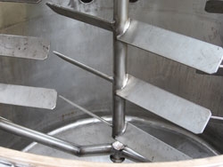 Назначение: перемешивание, диспергирование и гомогенизирование продукции Устройство: Вакуумный реактор представляет собой герметичный сосуд с теплообменной рубашкой, оснащенный двумя соосными мешалками - рамной (с плавающими скребками) и лопастной. Реактор оснащен смотровым люком с подсветкой, воронкой для добавки компонентов, пультом управления Гомогенизатор и вакуумный насос в комплекте поставки. ![]() Принцип работы: Компоненты загружаются в реактор (жидкие - с помощью вакуума), далее согласно технологического процесса выполняются необходимые операции (перемешивание, нагрев, охлаждение, гомогенизирование). Готовый продукт направляется на фасовку. ![]() Крышка реактора опускается и поднимается с помощью электромеханического привода, оснащенного блокираторами. Реактор оснащен моющими головками, обеспечивающими безразборную мойку. Соосно расположенные рамная и лопастная мешалки значительно ускоряют процесс перемешивания. Технические характеристики Объем, л 600 Соосно расположенные рамная и лопастная мешалки значительно ускоряют процесс перемешивания. |