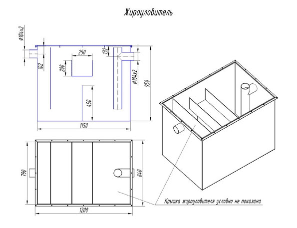 Назначение: жироуловитель служит для улавливания и удаления неэмульгированных жиров и масел из сточных вод, направляемые в очистные сооружения.