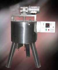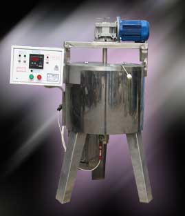 Перемешивающее устройство сироповарочного котла рамного типа с фторопластовыми скребками и мотор – редуктором, число оборотов мешалки 28-30об/мин. Для нагрева теплоносителя в нижней части емкости установлена ТЭНная коробка.