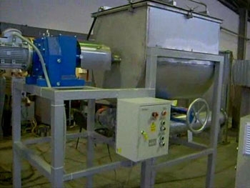 Назначение. Ленточный смеситель предназначен для смешивания сыпучих материалов, а также сыпучих с небольшим количеством жидких компонентов при условии получения готового материала в виде сыпучей массы. Могут применяться в различных отраслях промышленности для получение смеси с высокой гомогенностью. Процесс смешивания характеризуется двумя основными параметрами: однородность смеси, время смешивания, требуемое для достижения необходимой однородности.