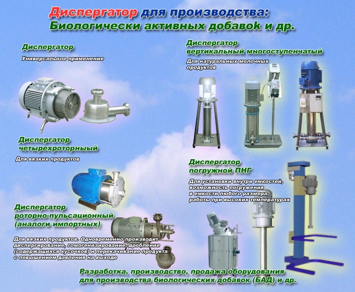 Диспергатор для производства биологически активных добавок (БАД), лечебного питания, спортивного питания, лечебной косметики и др.