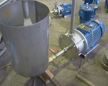 Схема устройства диспергатора ![]() Принцип работы диспергатора. Перекачиваемая диспергатором среда подводится к всасывающему патрубку и отводится из напорного патрубка под воздействием подпирающего давления. Крупнозернистые частицы смеси, подлежащие гомогенизации, попадают на крыльчатку агрегата, затем, получив ускорение, попадают на гомогенизирующий узел. В диспергирующем узле происходит их раздробление между вращающимся и стационарным калибровочными цилиндрическими ножами ротора и статора. Вращающийся и стационарный калибровочные ножи исполнены в виде колец с отверстиями. Попадающие на диспергирующий узел частицы (например, жировые шарики) выдавливаются крыльчаткой под воздействием давления, созданного центробежной силой, и проходят через отверстия. Так как частота вращения крыльчатки и одного из колец 3000 об/мин., происходит постепенное срезание (раздробление) подвижной частью кольцевого ножа (каждым отверстием вращающейся части) жировых шариков по мере их продвижения. Может быть доукомплектован преобразователем частоты вращения, установка которого позволяет добиться увеличения скорости вращения до 10000 об/ мин. Заводские испытания диспегратора ![]() |