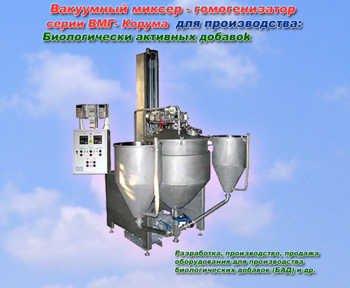 Вакуумный миксер гомогенизатор типа КОРУМА для производства биологически активных добавок (БАД), лечебного питания, спортивного питания, лечебной косметики и др.