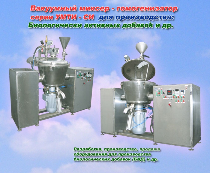 Вакуумный миксер-гомогенизатор типа УМТИ-СИ для производства биологически активных добавок (БАД), лечебного питания, спортивного питания, лечебной косметики и др.