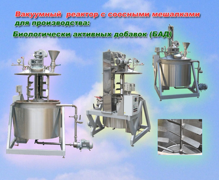 Вакуумный реактор с соосными мешалками для производства биологически активных добавок (БАД), лечебного питания, спортивного питания, лечебной косметики и др.